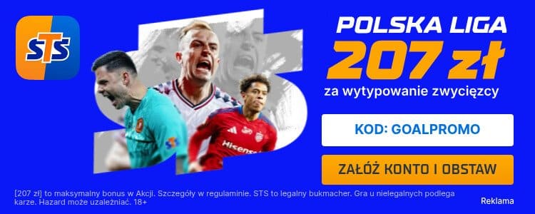 Sobotnie spotkanie to dobra okazja do skorzystania z promocji STS i zgarnięcia 207 zł bonusu za wytypowanie zwycięzcy meczu Piast – Górnik. Oferta jest skierowana do osób, które założą konto w STS z kodem promocyjnym GOALPROMO. Poniżej wyjaśniam krok po kroku jak odebrać bonus.