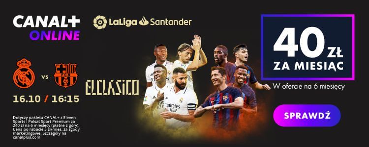 Jest również inna bardzo ciekawa opcja na obejrzenie tego spotkania. Transmisja będzie bowiem dostępna w usłudze CANAL+ online, do której dostęp jest teraz w świetnej cenie pozwalającej zaoszczędzić aż 144 zł. Za półroczną subskrypcję pakietu obejmującego wszystkie kanały CANAL+, Eleven Sports i Polsat Sport Premium zapłacimy tylko 240 zł, co w przeliczeniu na miesiąc daje jedynie 40 zł. Aby skorzystać z oferty wystarczy zarejestrować się za pośrednictwem naszej strony.