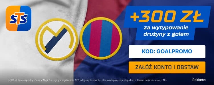 Promocję na El Clasico przygotował również bukmacher STS. Podając kod GOALPROMO podczas rejestracji będziesz mógł postawić zakład na drużynę, która zdobędzie bramkę po kursie 150. Stawiając tylko 2 zł możesz otrzymać aż 300 zł bonusu. Jak skorzystać z tej oferty?