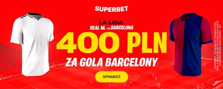 Na pojedynki Realu Madryt i Barcelony czeka cały piłkarski świat. Nie inaczej jest tym razem. Obie drużyny przystąpią do tego meczu z jednym celem – odniesienie zwycięstwa. Obie dysponują potencjałem i formą pozwalającą im o tym myśleć. Tym samym kibice mogą przygotować się na prawdziwą ucztę. Mecz nie ma zdecydowanego faworyta, ale jednego można być pewnym. Biorąc pod uwagę formę strzelecką Realu i Barcy nie zabraknie w tym meczu goli. W tym zwracam uwagę na ofertę Superbet, który oferuje duże bonusy za gola Barcelony lub trafienie Mbappe – odpowiedni 400 lub 600 zł Więcej o tej ofercie znajdziesz poniżej. Mój typ: gol Barcelony