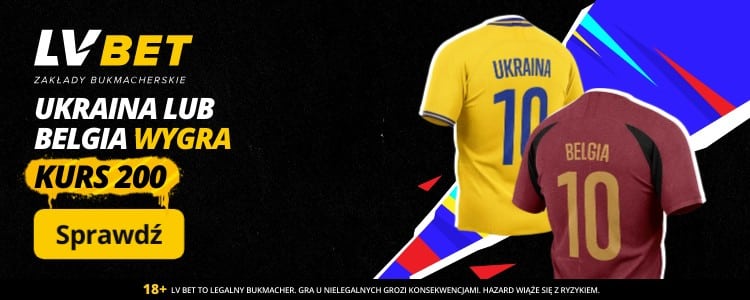 Warto jednak zwrócić także uwagę na promocję LVBET, czyli kurs 200 na wygraną Ukrainy lub Belgii. Z oferty można skorzystać zakładając konto w LVBET z kodem promocyjnym GOAL. Więcej informacji o tej promocji znajdziesz wyżej.